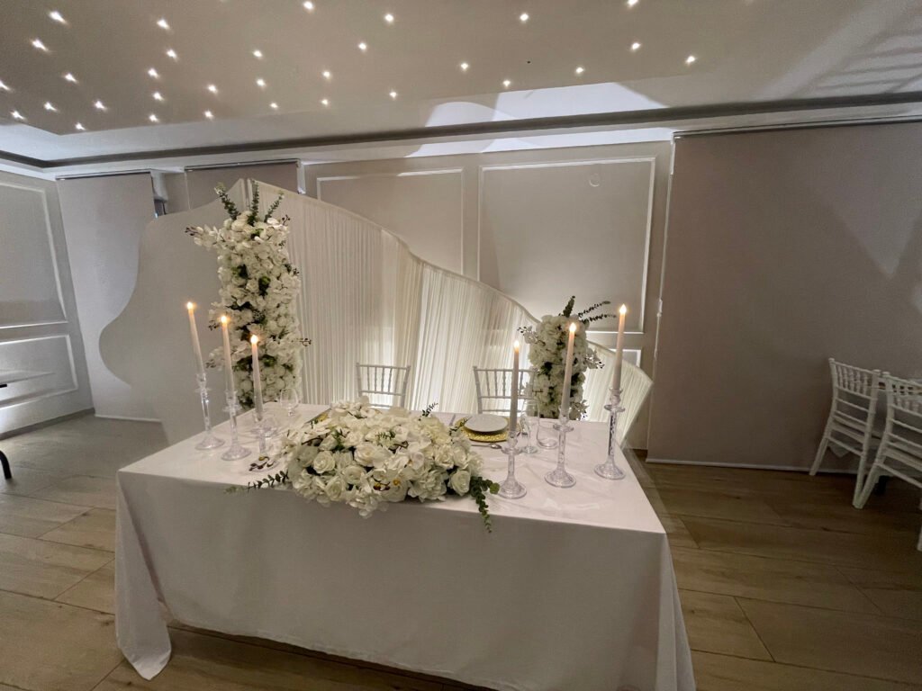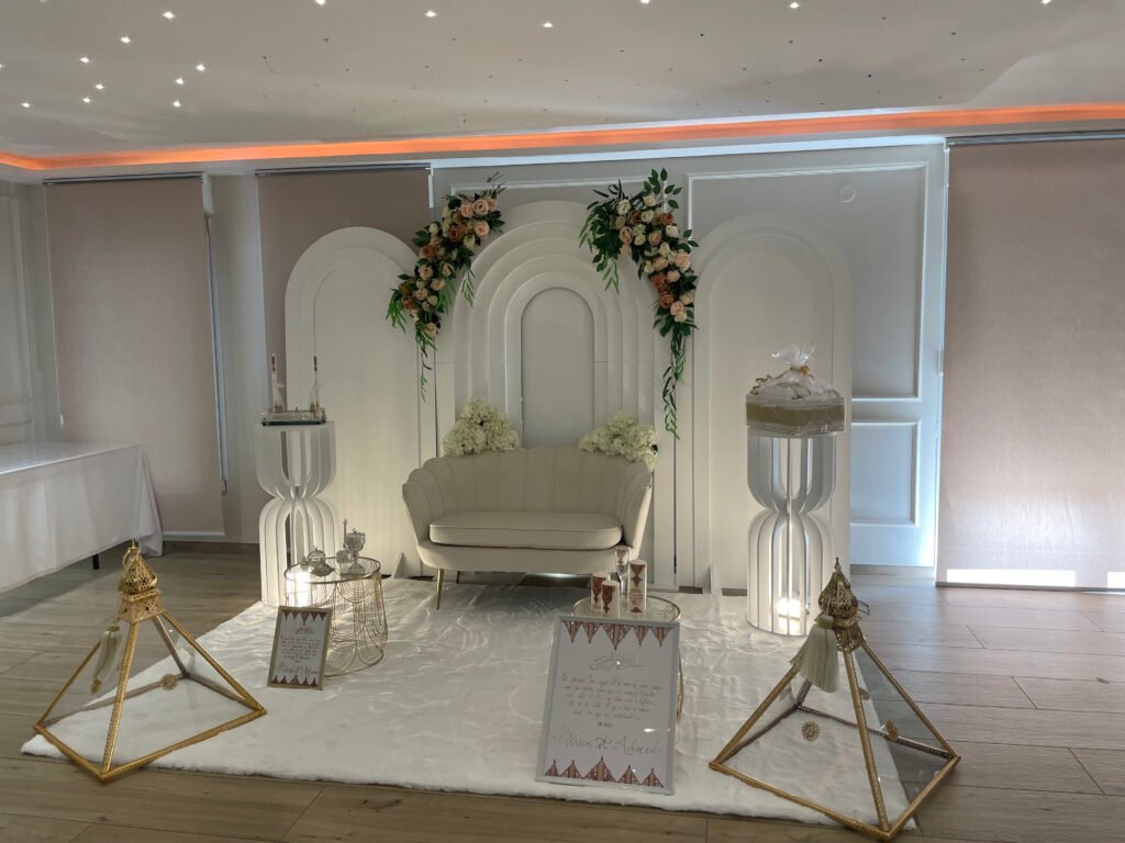 Notre salle peut accueillir jusqu’à 80 personnes assises, dans une ambiance intime, idéale pour les mariages à taille humaine. Les espaces sont pensés pour que vous puissiez créer une mise en scène qui vous ressemble, que vous soyez en petit comité ou avec l’ensemble de vos proches.