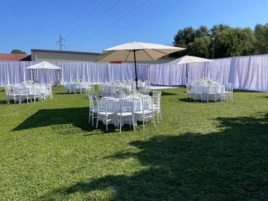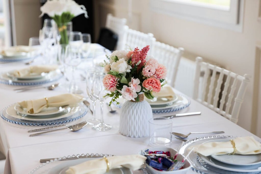 Chaises, tables, nappes, vaisselle… tout peut être installé pour vous. Vous avez aussi la possibilité de louer la salle vide, pour une décoration totalement personnalisée.